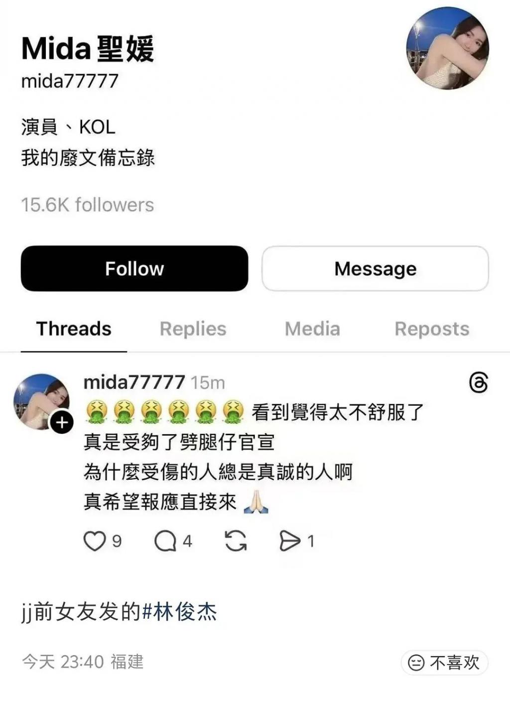 在某社交平台上,疑似林俊杰前女友发文内涵其劈腿,让事情变得更加扑朔迷离,网上各种声音乱飞。。。