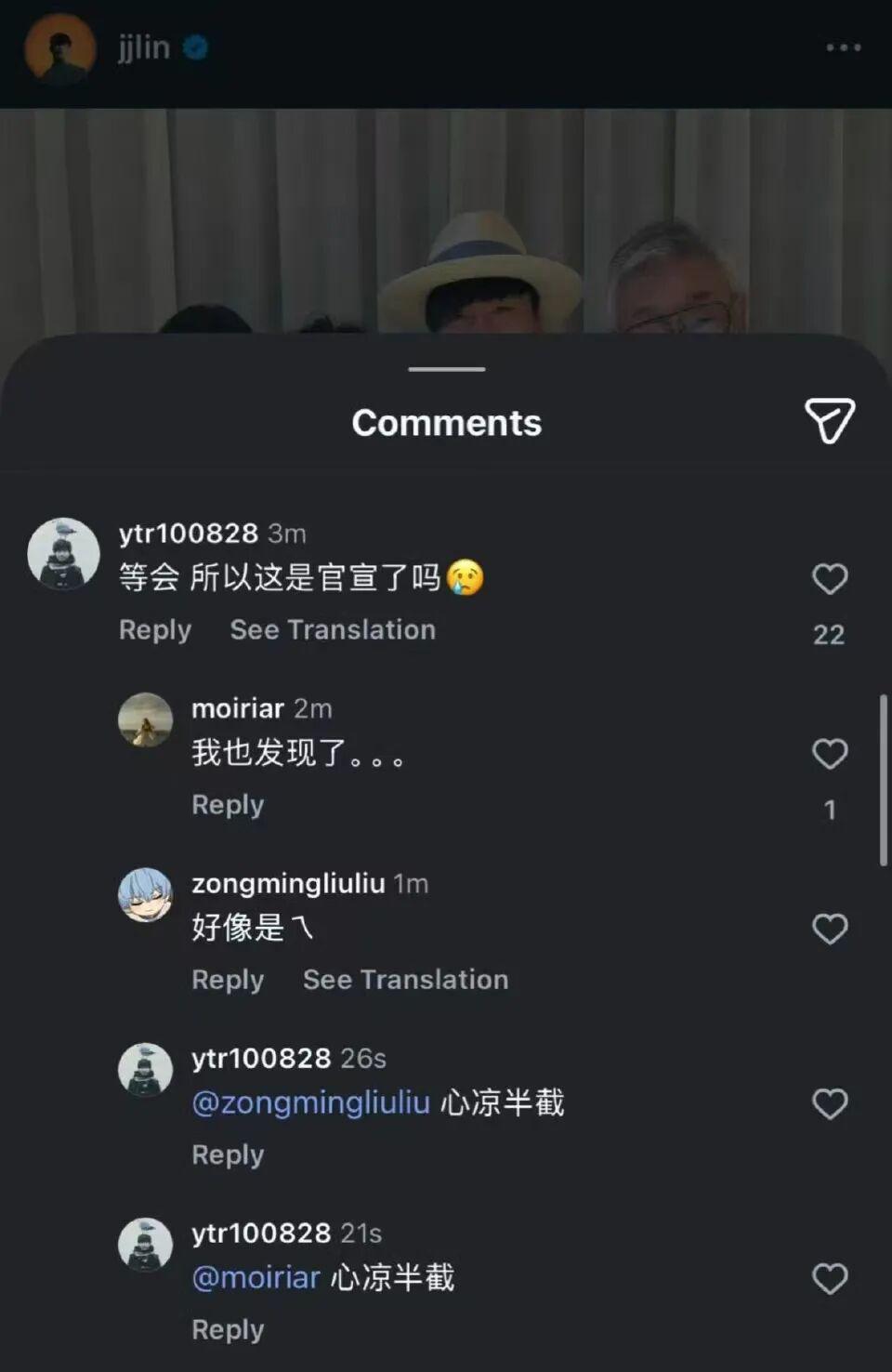 4 月,有游客在东京一家网红咖啡店偶遇两人。5 月,两人在新西兰被拍到一起逛街购物,七七还帮林俊杰挑衣服,两人举止亲密。11 月,他们又被偶遇同游洛杉矶。当时林俊杰还更新了社交平台:“有人问我为何悄无声息地与某些人断绝来往。我答道:他们心知肚明,无需多言。” 随后又在评论补充:“耐心… ”,疑似做出回应。